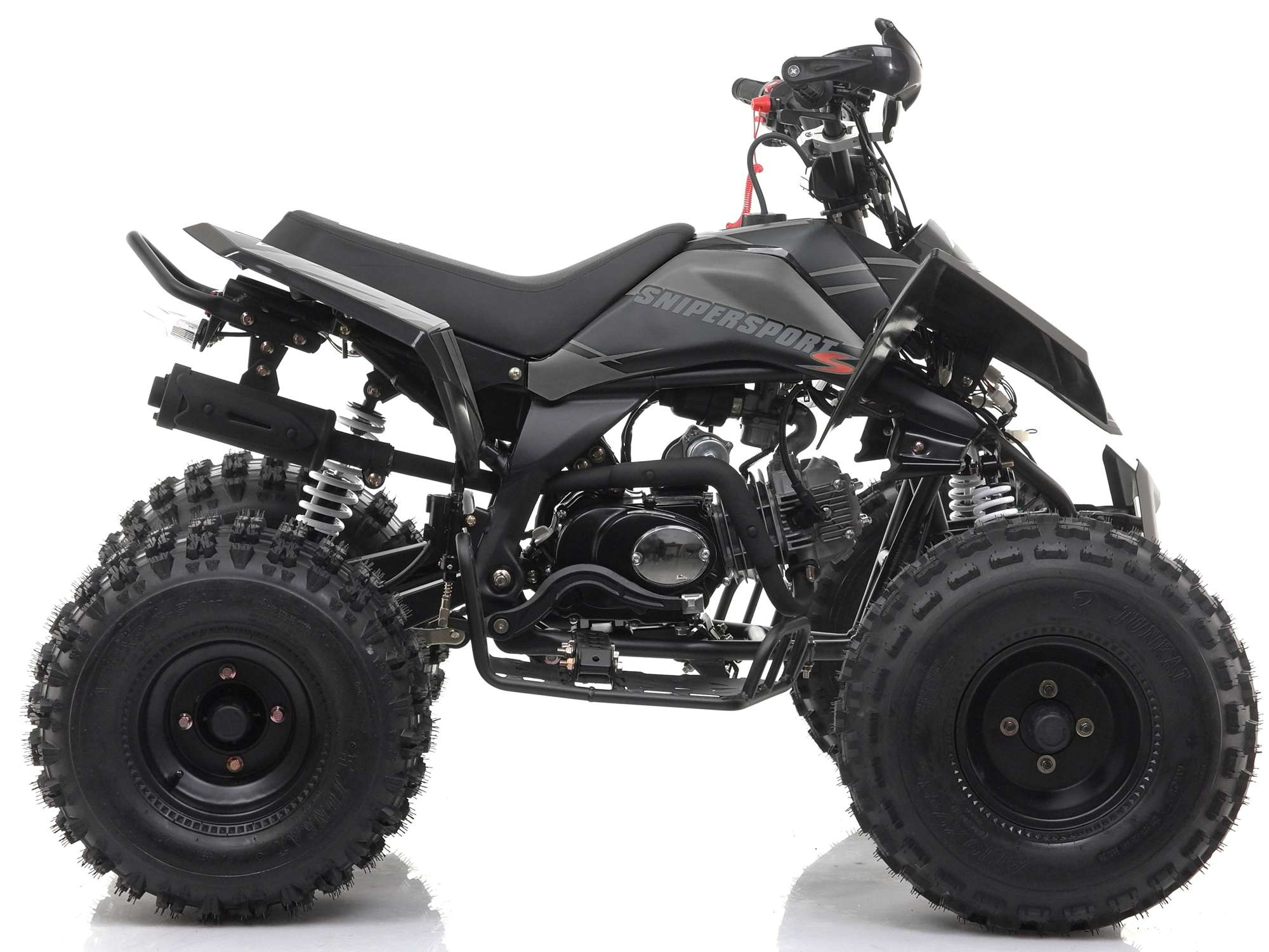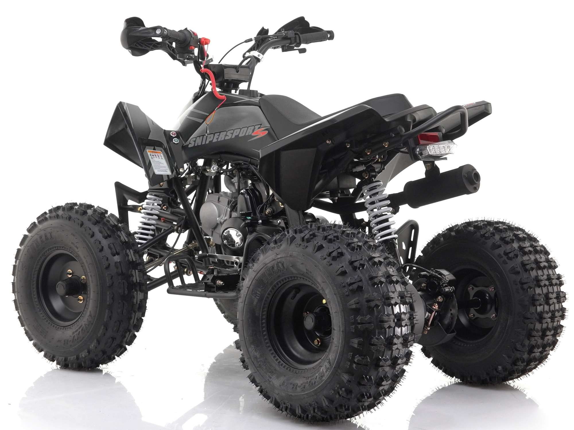 The Sniper 120cc quad is the aggressive looking sibling of the popular 125RR quad bike. The Sniper quad packs a big punch and features 8" chunky off road tyres, handlebar protection, front bumper and rear seat support as standard.
